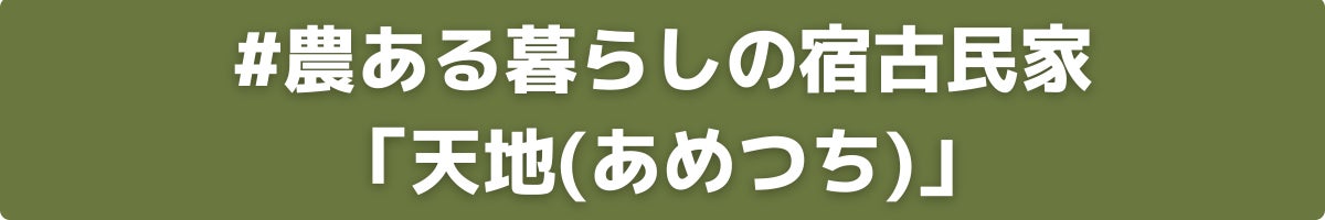 「農ある暮らしの宿 古民家天地(あめつち)」は、体験を通じてノウハウを修得して頂く事で就農・移住を促進する実践型&長期滞在型の農家民宿です。