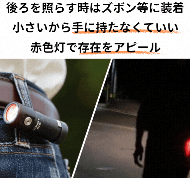 ストロボは1200ルーメン(4000Kは800ルーメン)と強い光を発するため、護身用として。防犯や「いざ」という緊急時に威力を発揮。