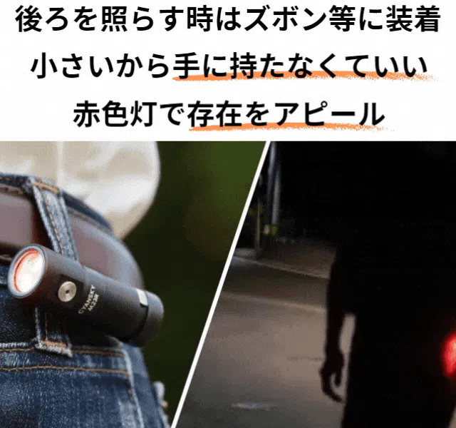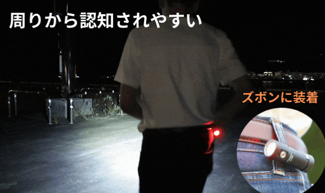 周りから見やすい明かり。歩道がないところを歩く際などにはとても便利。