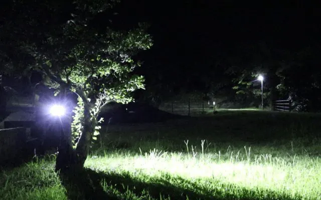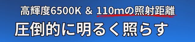 超小型ながら120度の広角照射と110mの照射距離で周囲を明るく照らす。