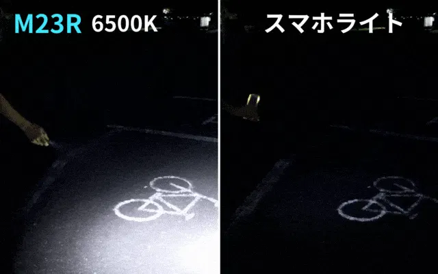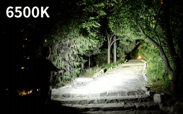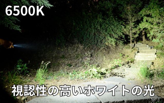 高輝度6500Kは、散歩や通勤などの普段使いには明るく見やすい光。