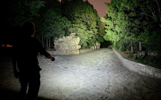 小型タイプの懐中電灯は400ルーメンを超えるとかなり明るいされている中、『M23R』は最大で1200ルーメンの明るさで、暗い場所でも一瞬で照らすことができる。