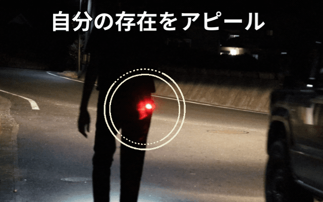赤ライト点滅は視認性が高く自分の存在をいち早く認識してもらいやすい。