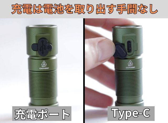さらに内蔵バッテリーは交換タイプを採用しているため、付属のバッテリーが消耗した市販の充電池でもご使用できます。また2m落下テストをクリアし防水性能も優れた圧倒的なタフな作りの「M23R」は、これまでのコンパクト系懐中電灯の常識をくつがえす一台とも言えるかもしれません。