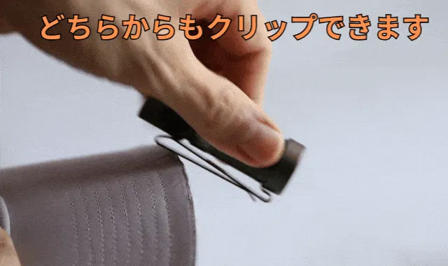 専用のクリップは、どっち側からも差し込めるタイプなので用途に合わせて使い分けできます。