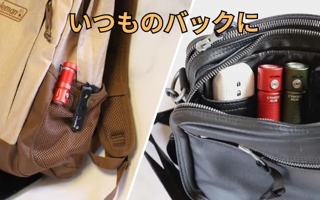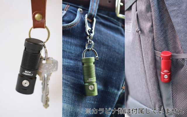 キーホルダー、バックパック、ベルトなどに装着して、いつもどこでも簡単に持ち歩くことができます。