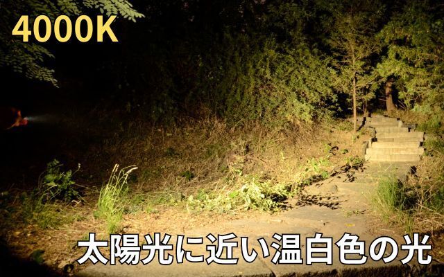 6500Kが広い範囲を強力な白色光で照らすのに対し、4000KはCRI90という極めて高い演色評価数で目に優しく自然な色合いで周囲を優しく照らします。