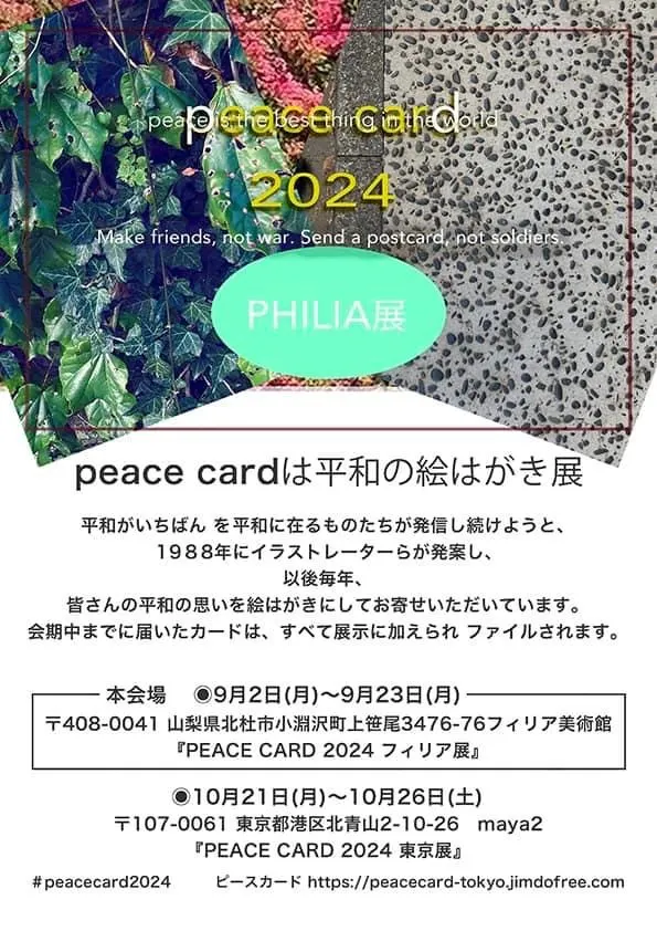 PEACE CARDフィリア展(山梨)が今月23日まで開催。