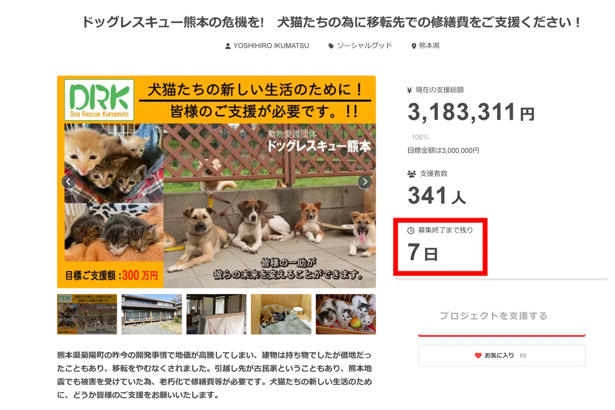 クラウドファンディング終了まで、残りあと1週間となりました。