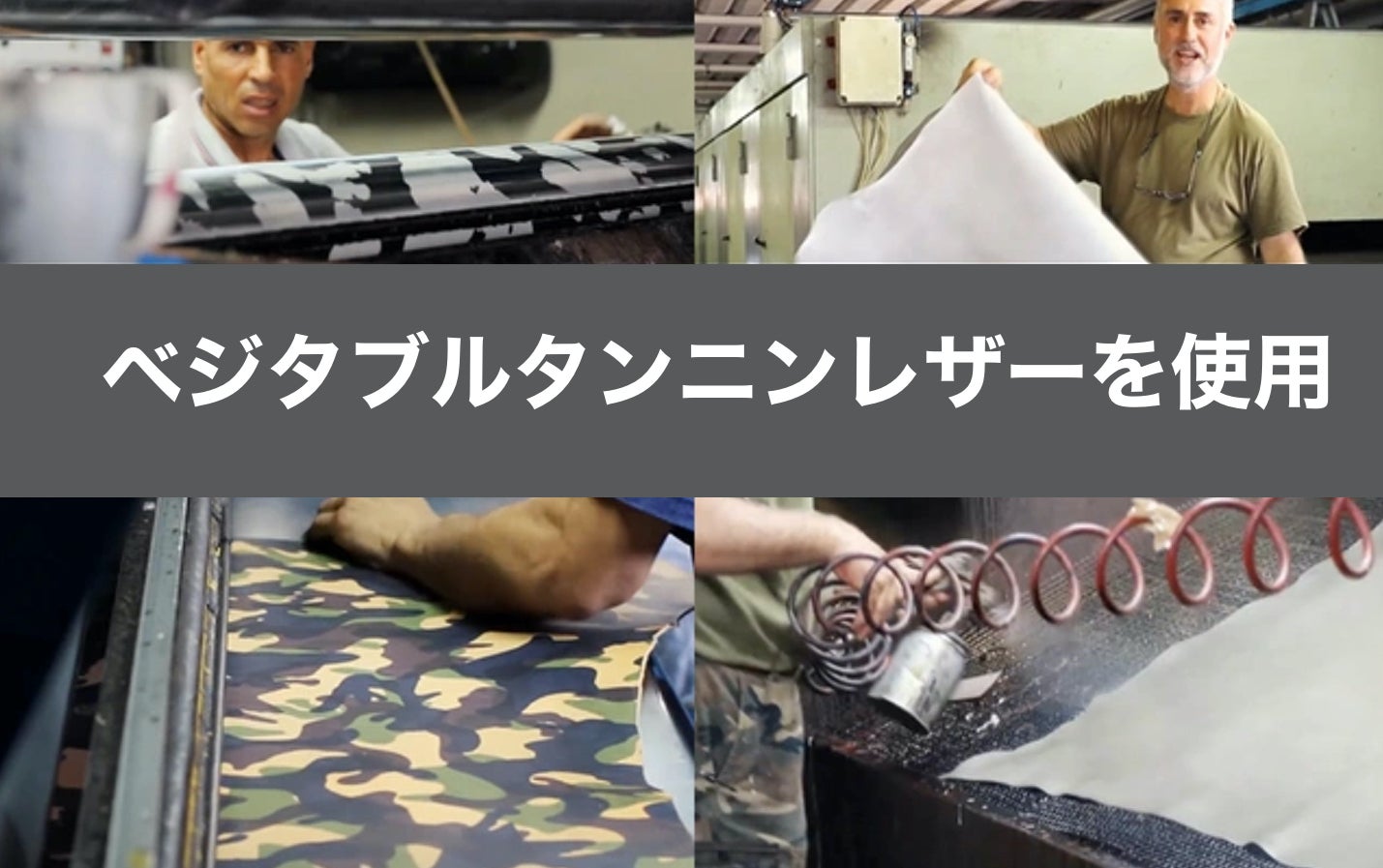 レザーはすべて、革の一大産地イタリアのトスカーナ州サンタクローチェ、アズーラ社(迷彩革)(赤、ブラウン革)とブルターニャ社(ワックス皮)製。バッグに最も適していると言われるキップレザーのショルダー部位を使用し、しなやかでハリがありながら、堅牢で長く美しいシルエットをキープします。