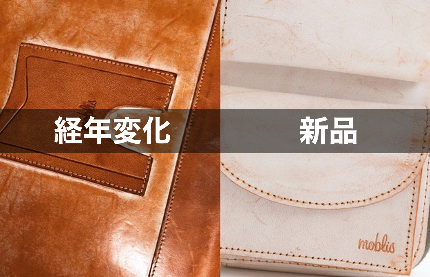 いずれもコストのかかる、ベジタブルタンニン鞣(なめ)し製法で、その革はオイルをしっかり含み、使い込むごとに深い色艶へと変化してきます。