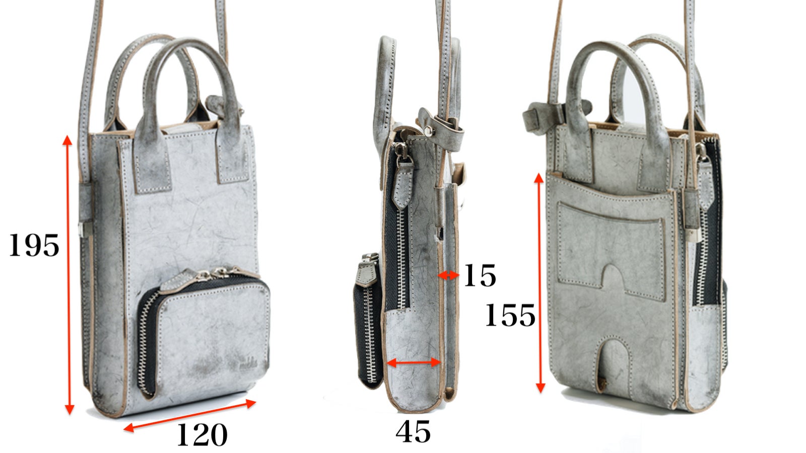 サイズ :195mm x 120mm x 45mm (ショルダー最長1250mm)