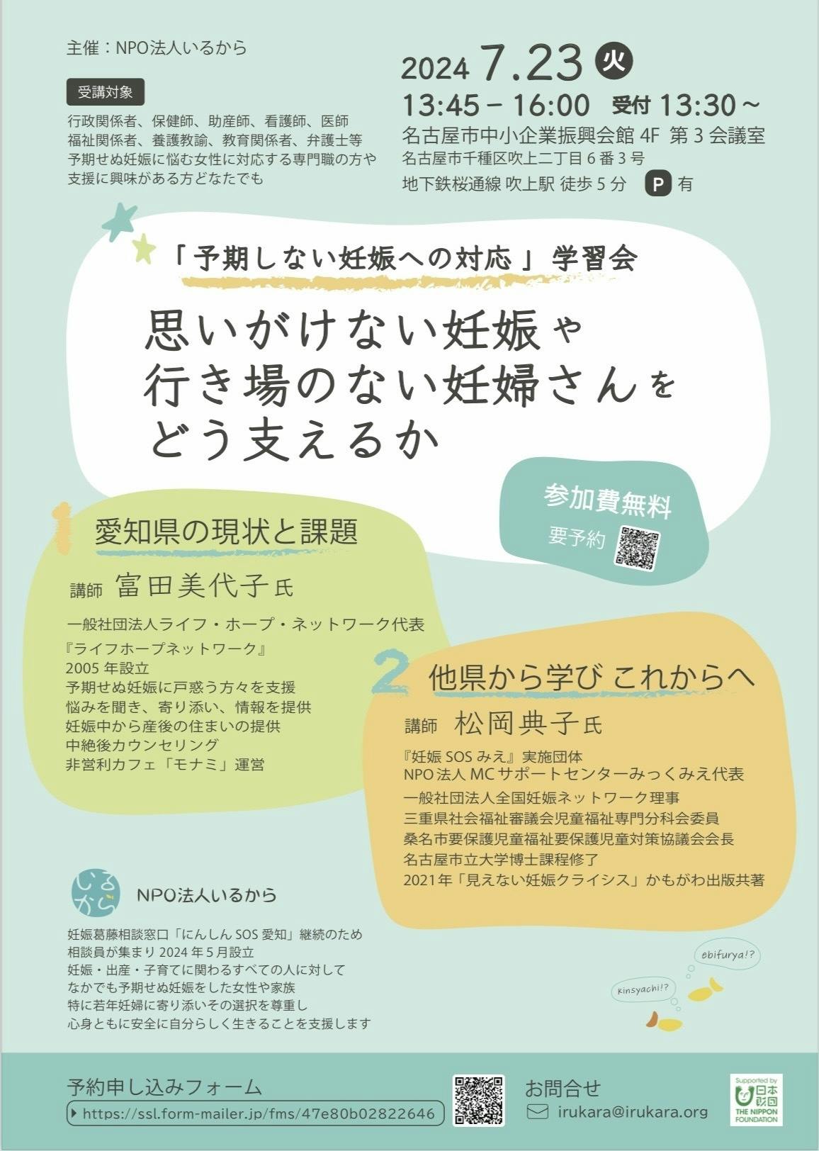妊娠葛藤相談窓口「にんしんSOS愛知」継続のため、相談員が集まり2024年5月にNPO法人いるからを設立しました。