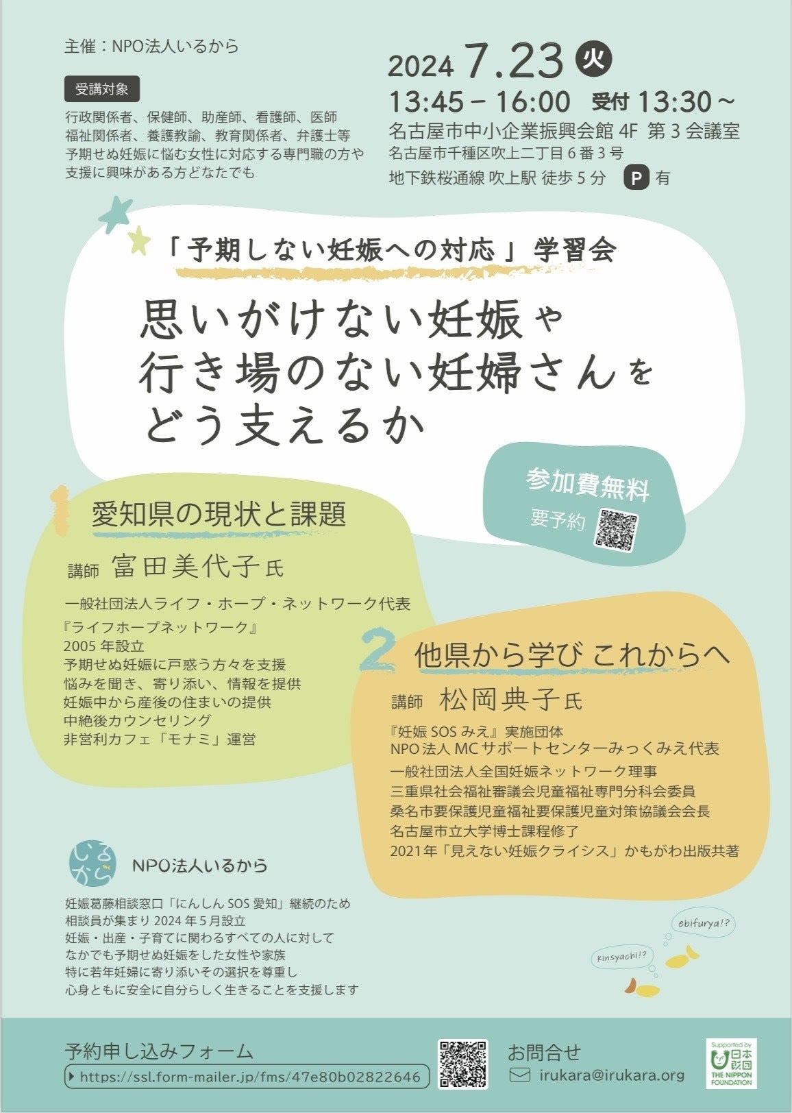 妊娠葛藤相談窓口「にんしんSOS愛知」継続のため、相談員が集まり2024年5月にNPO法人いるからを設立しました。