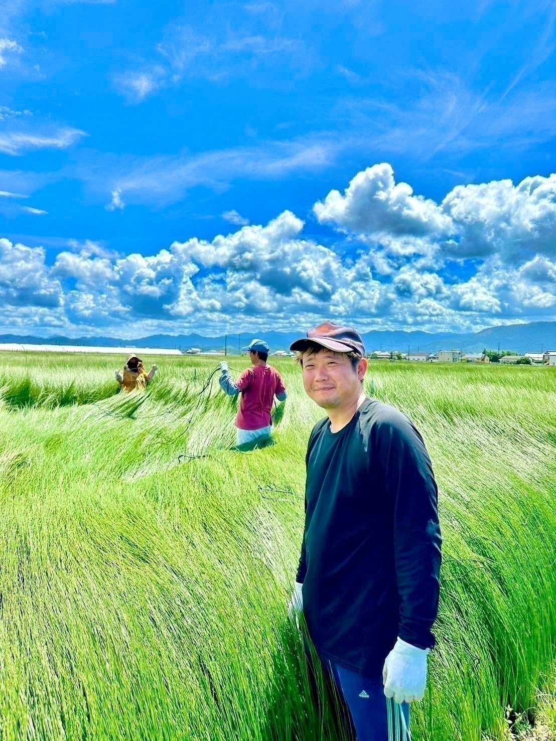 こんにちは、私は熊本県畳表銘柄確立研究会(熊銘会)の坂本と申します。長年、い草生産者として日本の文化である畳の原料の一つ、い草畳表を作って参りました。この畳の伝統を守るため色々な活動に取り組んでおります。しかし、後継者不足、い草生産専用機械の全種類生産終了など様々な問題により、1300年続く国産い草畳表が数年~十数年の間に無くなるかもしれない状況にあります。今回のプロジェクトでは、最後の産地である熊本県八代平野の、地元の誇りである畳文化を世界に広めることを目指しています。