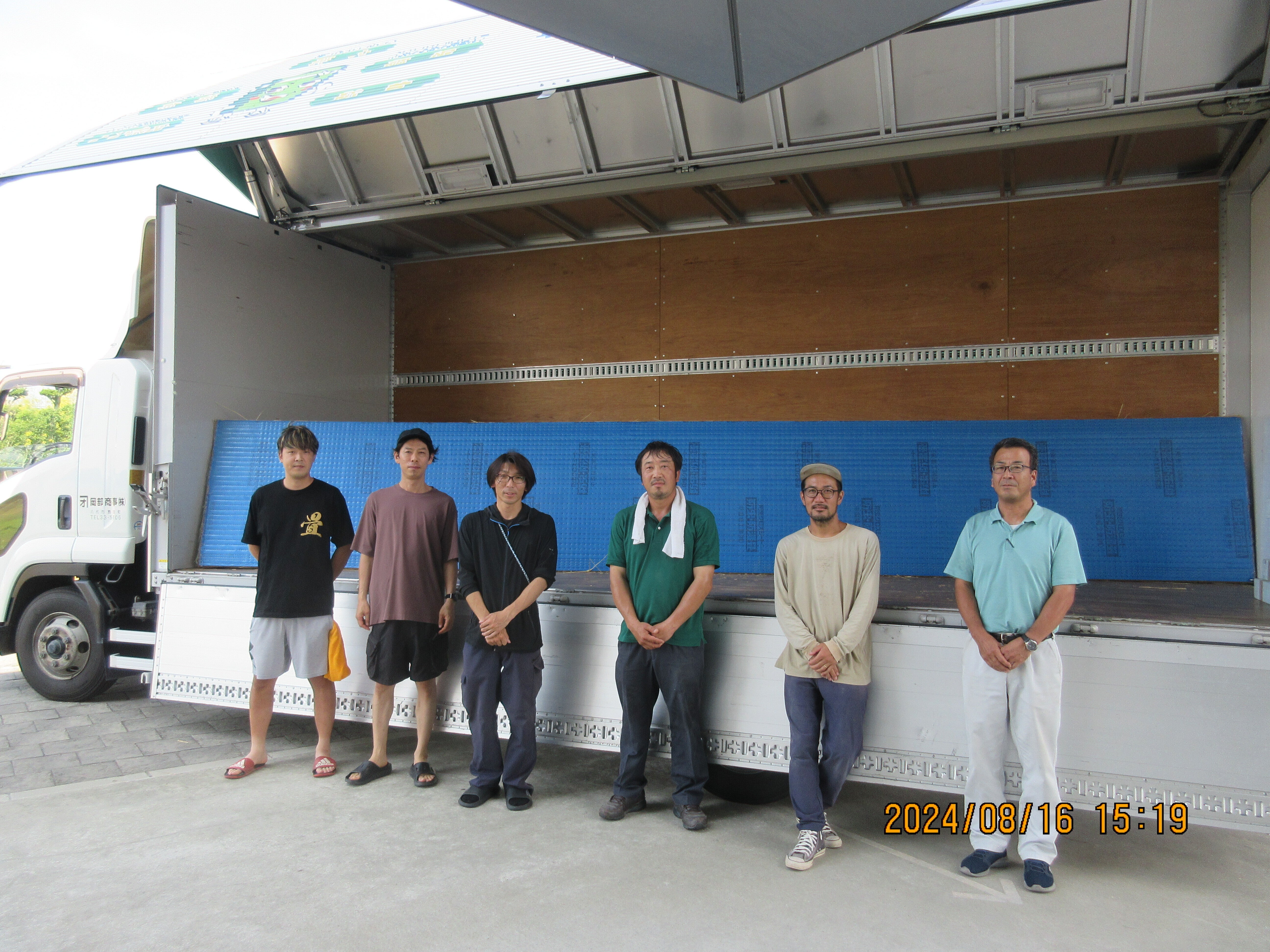 先日、予定どおり世界一長い畳床をくまモンポートへ運び込みました。