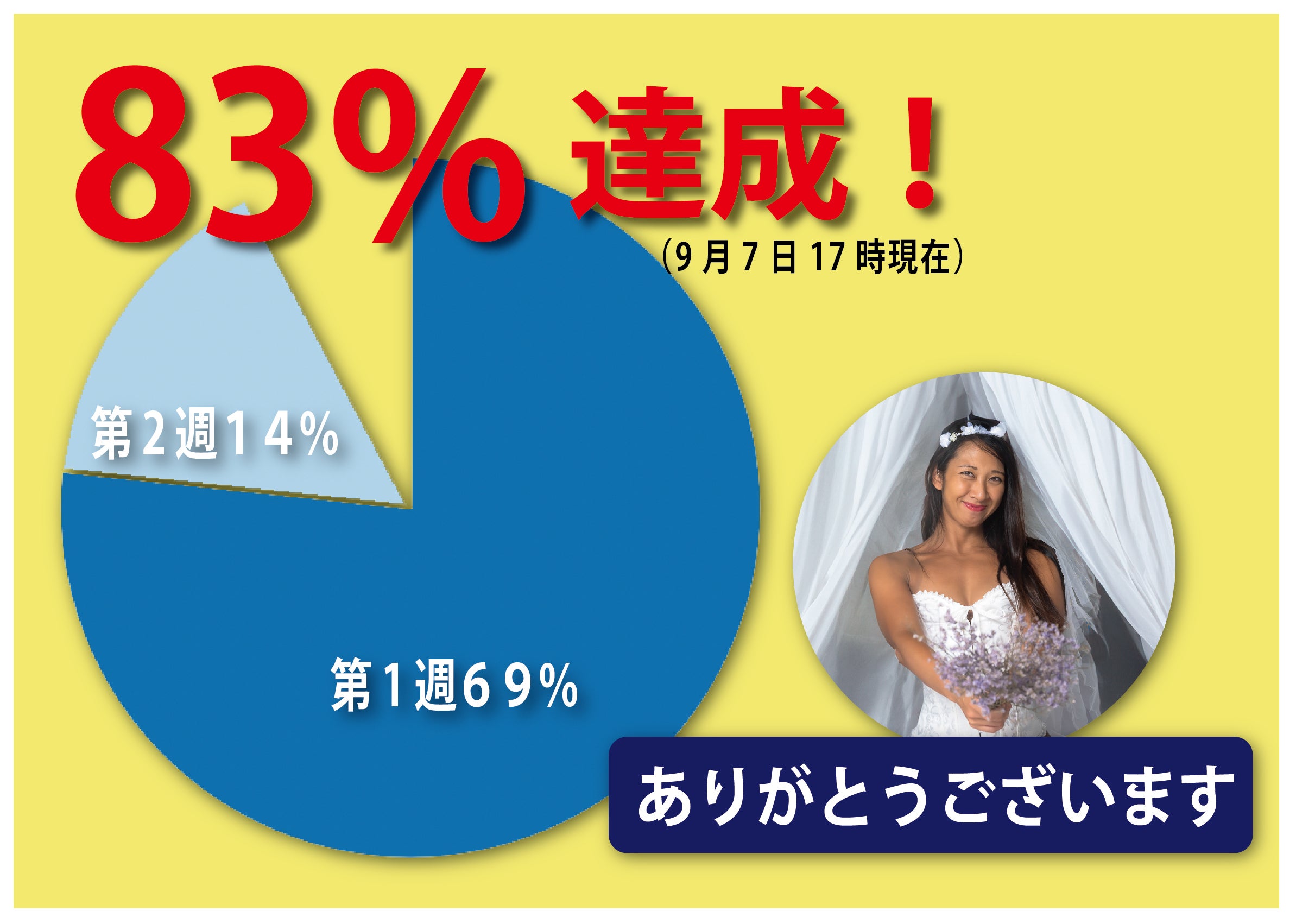 ヤワキン展のために50万円を目標にしたクラウドファンディングは開始してちょうど2週間が経ちました。現在35人の方から415,500円のご支援をいただき83%の達成となっています。厚いご支援本当にありがとうございます。                                (9月7日17時現在)本日はご支援いただいた方々からいただいたメッセージの一部をご紹介します。■応援しています 頑張ってください 写真展を楽しみにしております。■かっこよかったり可愛かったり いろんなヤワキンちゃんを楽しみにさせてもらってます■応援しています 頑張ってください!DVDも出してください■初めまして 写真展を楽しみにしております。 頑張ってください。■11月の展示会に参加するのを楽しみにしています■写真は人生観の足跡。gravure_blueさんは素敵な足跡を残して豊富な財産を蓄積していますね。これからもより豊かな人生を歩んでください。■あっという間に予定額の半分ですね。さすがメッセージはいつも拝読し力をいただいています。本当にありがとうございます。改めて50万円の目標を達成して素晴らしいヤワキン展にしたいと思っており、ヤワキンちゃんと私は連日SNSなどでキャンペーンを広げています。この活動報告をご覧の皆様、ぜひSNSなどでこのCFを宣伝頂けますよう心よりお願い申し上げます。この活動報告はご支援いただいた方、お気に入りに登録いただいた方全員に配信されます。活動報告は支援状況を適宜報告するとともに、ヤワキン展の準備状況やヤワキン展の報告などリターン品の最終発送の12月まで続ける予定です。まだお気に入りに登録いただいていない方はこれを機にぜひ登録をお願いします。