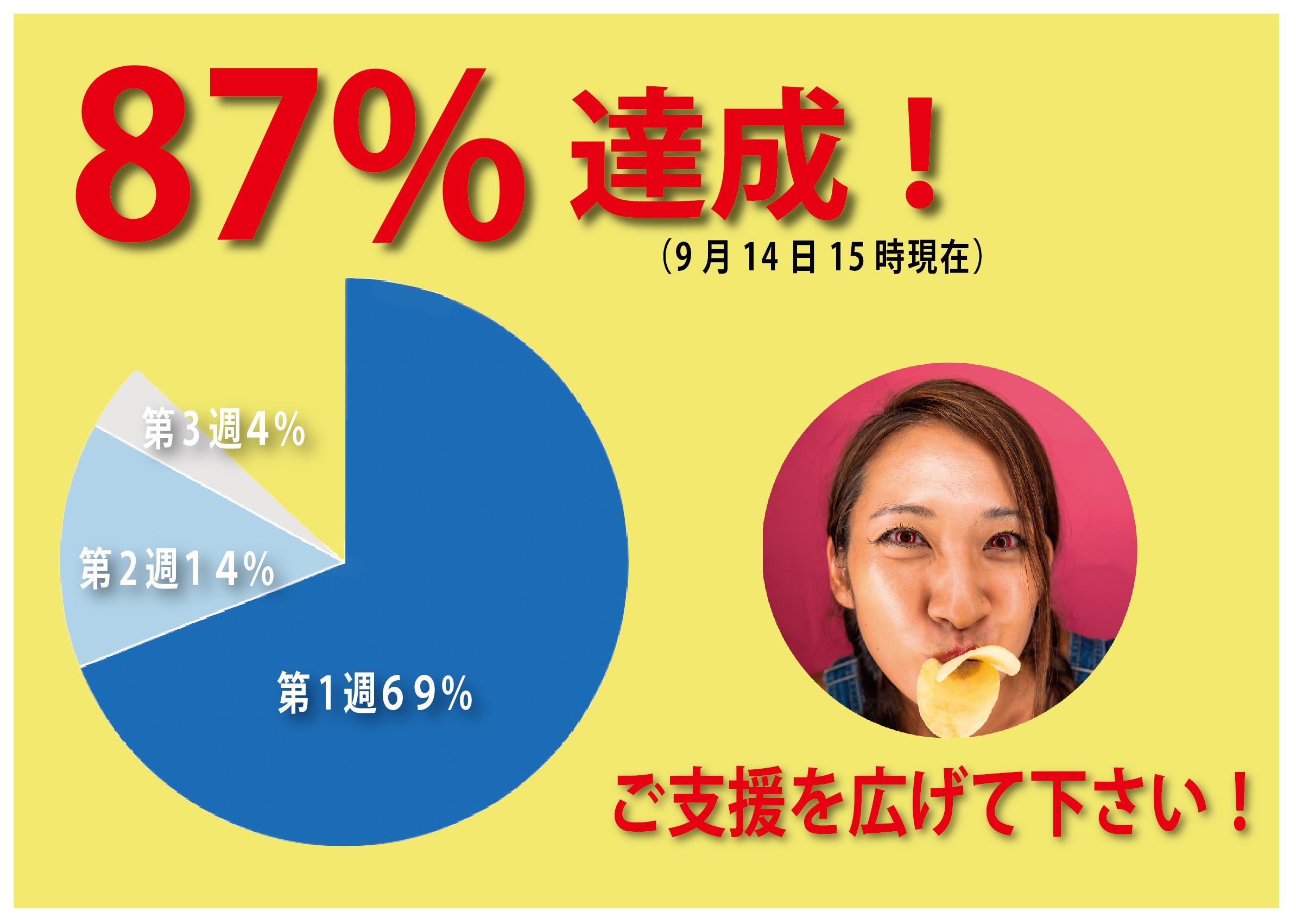 本日16日午前中、プロジェクトの目標金額50万円を達成しましたのでご報告致します。皆様のご支援、ご協力によりプロジェクトが成功しましたこと、心より感謝申し上げます。本当にありがとうございました。■現在の支援総額:500,002円■支援者数:48人 ※9月16日15時現在今後なるべく早くヤワキンちゃんやCampfireのスタッフとネクストゴールや達成したときにご提供できる内容を相談してご案内したいと思いますので引き続きプロジェクトへの注視とご支援をよろしくお願いします。なおリターンの対応はプロジェクトが終了した9月末以降、10月と12月2回に分けて対応させていただきます。こちらは時期がまいりましたら事前に連絡または調整させていただきますのでよろしくお願いします。取り急ぎ目標達成の報告とお礼をさせていただきました。※プロジェクトは下記からご覧下さい。https://camp-fire.jp/projects/775864/view