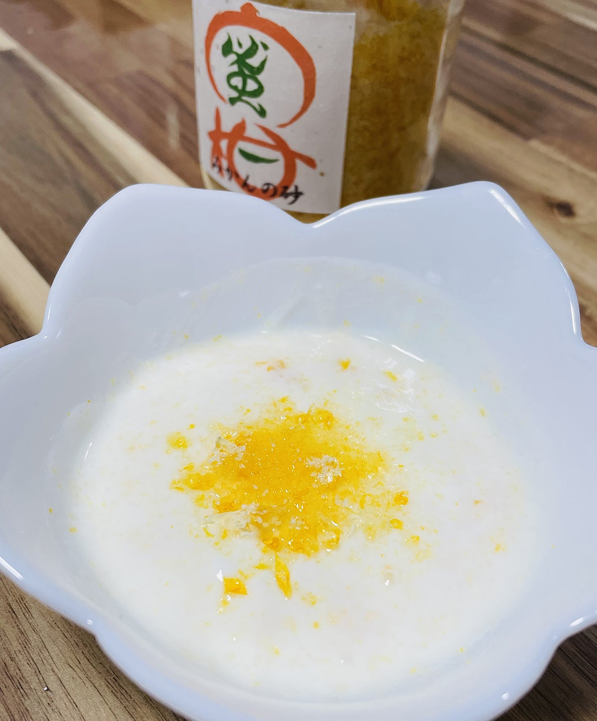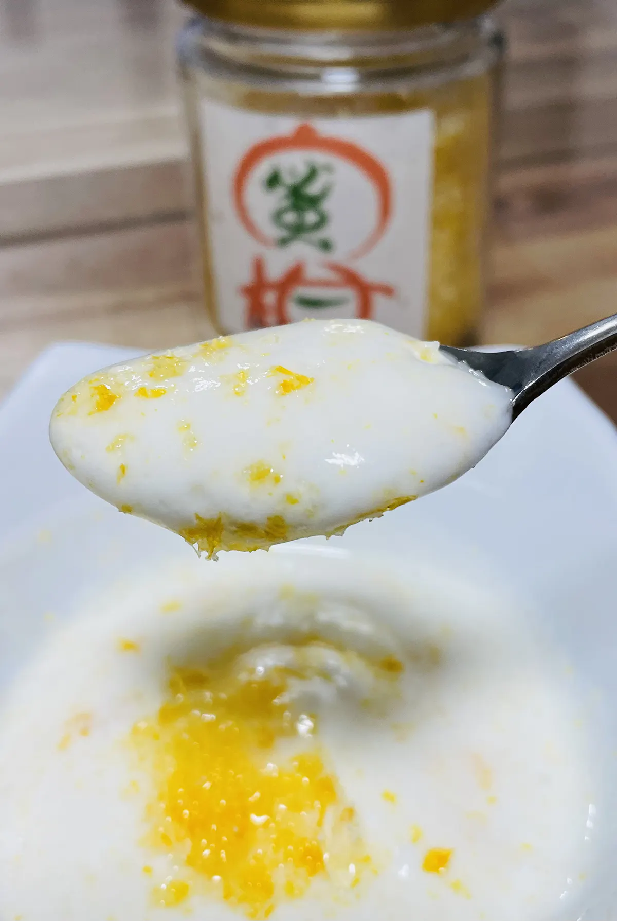 たとえば、以下のように「アイスクリーム」や「ホットミルク」、「パン」、「ヨーグルト」「大福」など、贅沢なみかんスイーツになります。