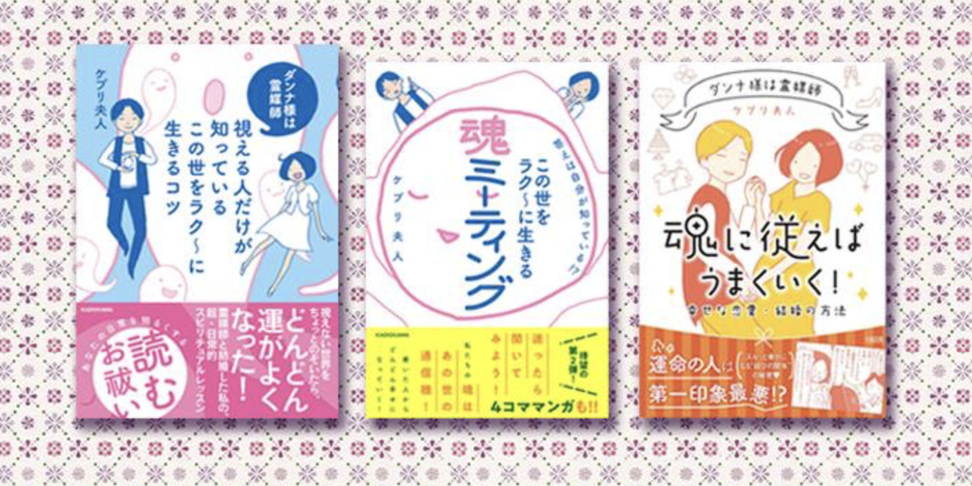 著書:視える人だけが知っているこの世をラク〜に生きるコツ(KADOKAWA)/この世をラク〜に生きる魂ミーティング(KADOKAWA)/魂に従えばうまくいく!幸せな恋愛・結婚の方法(大和出版)
