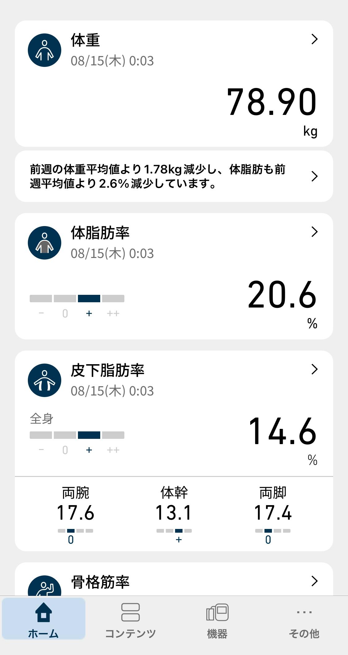 現在78.9kg→残り1.9kg