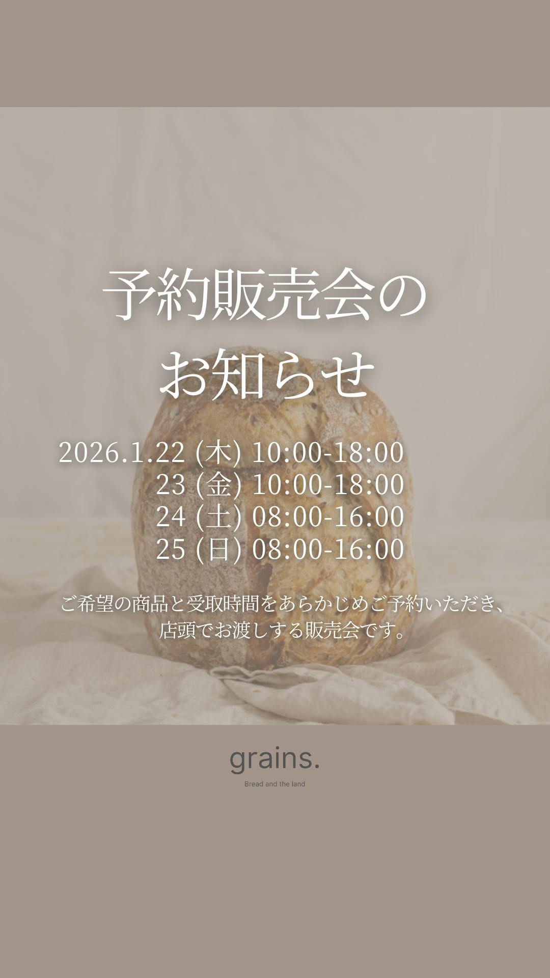 grains.パンの予約販売会のお知らせ