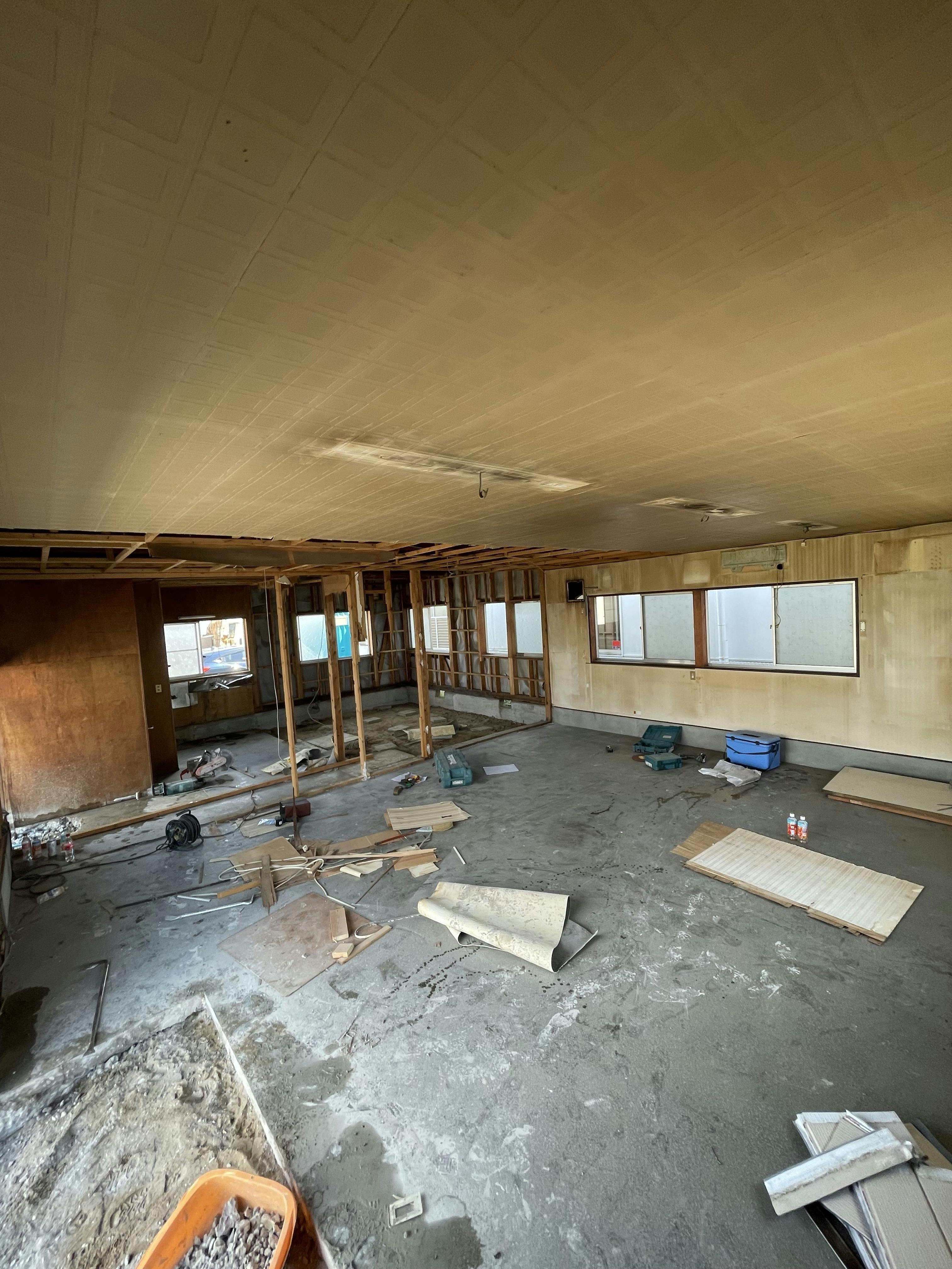 解体を終えた店内はスッキリと骨組みが見える状態になり、ここから新しい空間が生まれていくと思うと胸が高鳴ります。