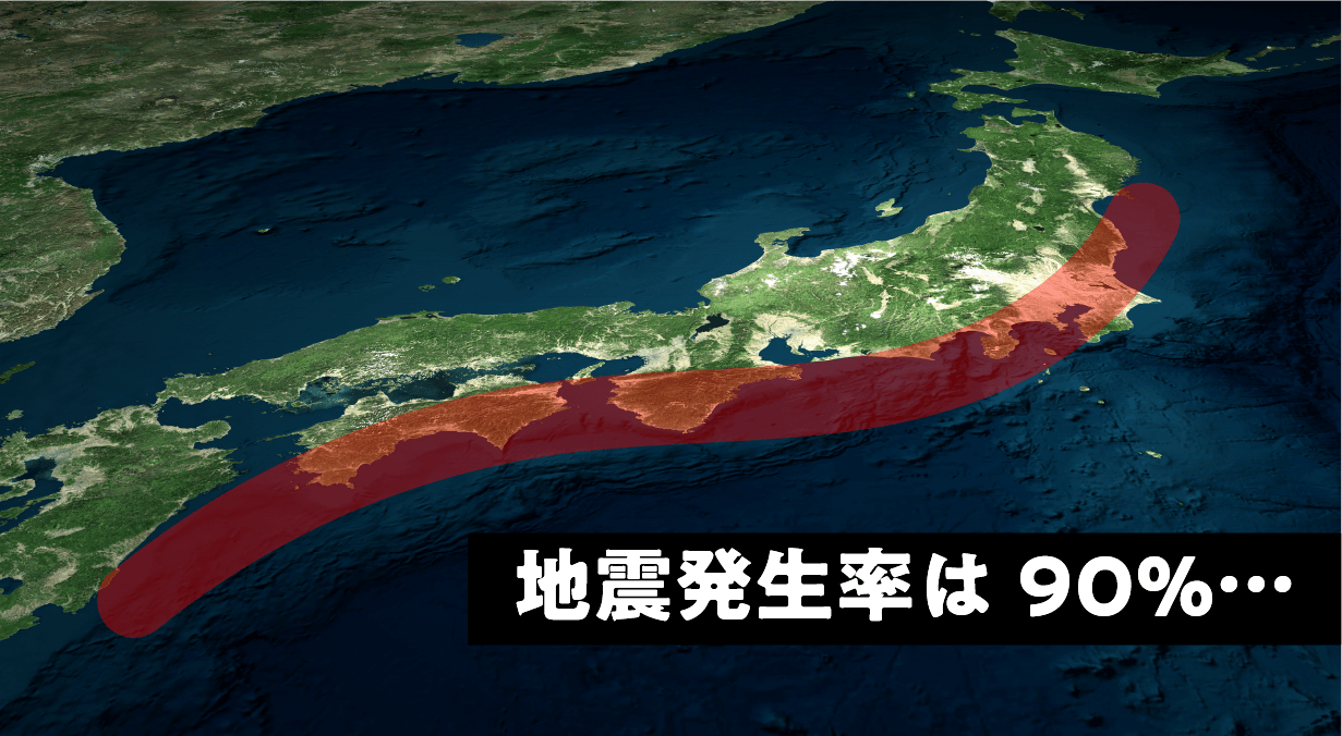 また、最近では日本中で場所を問わず大きな地震が多発しており、南海トラフ巨大地震においては10年以内、50年以内では90%の確率で起きるとも言われています。