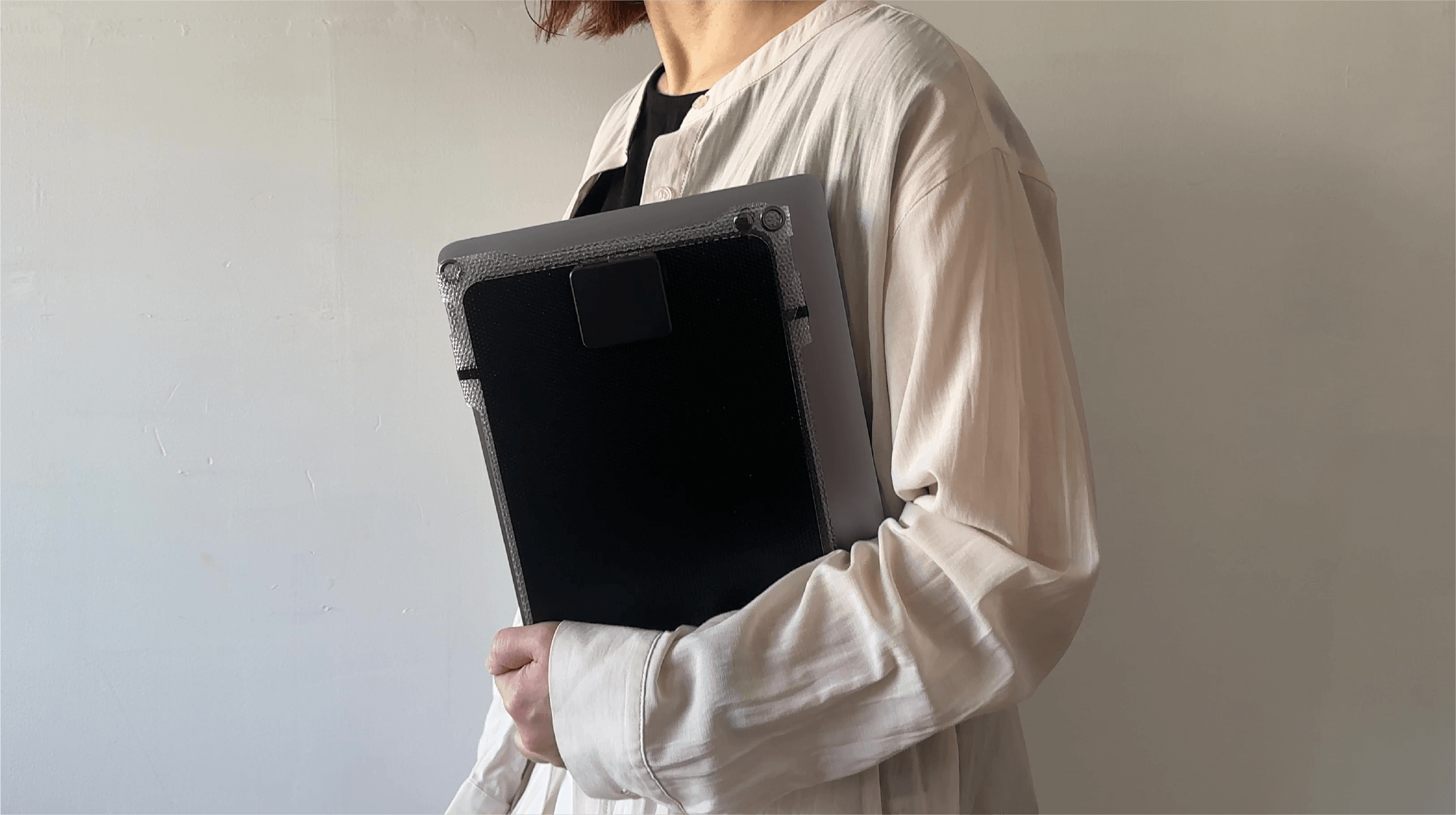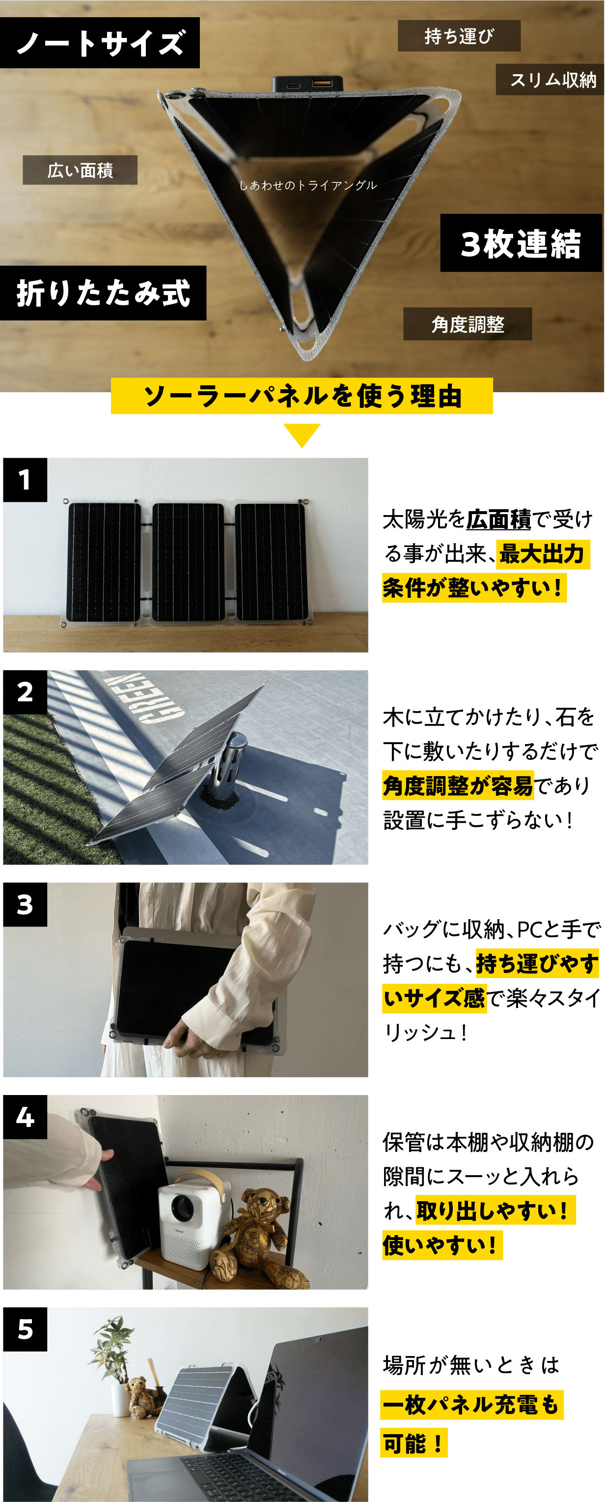 私が本当に作りたかったのは、効率的に太陽光から充電できる形状にこだわり、ノートサイズなのにコンセント並みの充電が可能なソーラーパネルApproach2なんです!