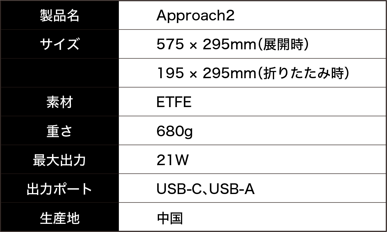 ソーラーパネルApproach2は、折り畳むとノートサイズになり、薄いので、リュックなどカバンにスッと収納しやすく持ち運びも楽々。