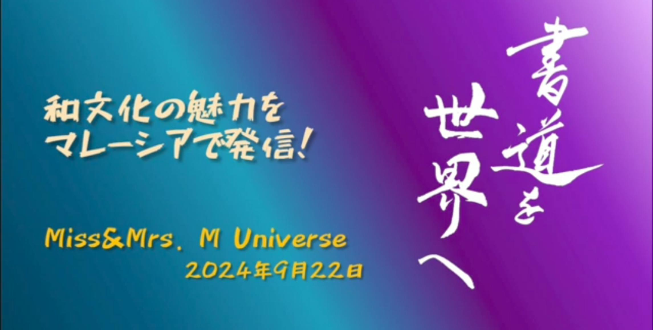 マレーシアのReiss Tiara氏が主催するMiss&Mrs M Univers の雰囲気はこんな感じだそうですので、動画をシェアします!昨年は和文化を披露するような場は無かったそうですが、今年はこの舞台で碧水の書道作品も見ていただける運びとなりました。