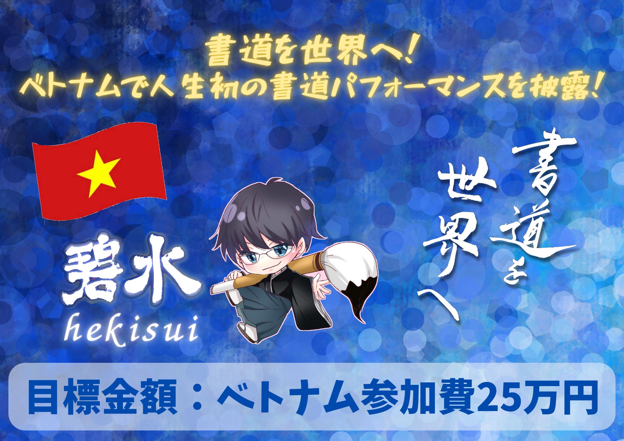 2025/08/22 09:06おはようございます!この度、「書道を世界へ!ベトナムで人生初の書道パフォーマンスを披露!」と題し、2回目のクラウドファンディングを行うこととなりました!!期間は8月20日(水)〜9月26日(金)となります。前回の活動報告で書いた気功の大会についてもクラファンページに記載してますので、ぜひクラファンページをお読みいただき、お気に入り登録していただけるととても嬉しいです♪https://camp-fire.jp/projects/867095/view?utm_campaign=cp_po_share_c_msg_mypage_projects_showマレーシアのクラファンにご支援いただき本当にありがとうございました!ベトナムへのクラファンでも、引き続きよろしくお願いします。 もっと見る