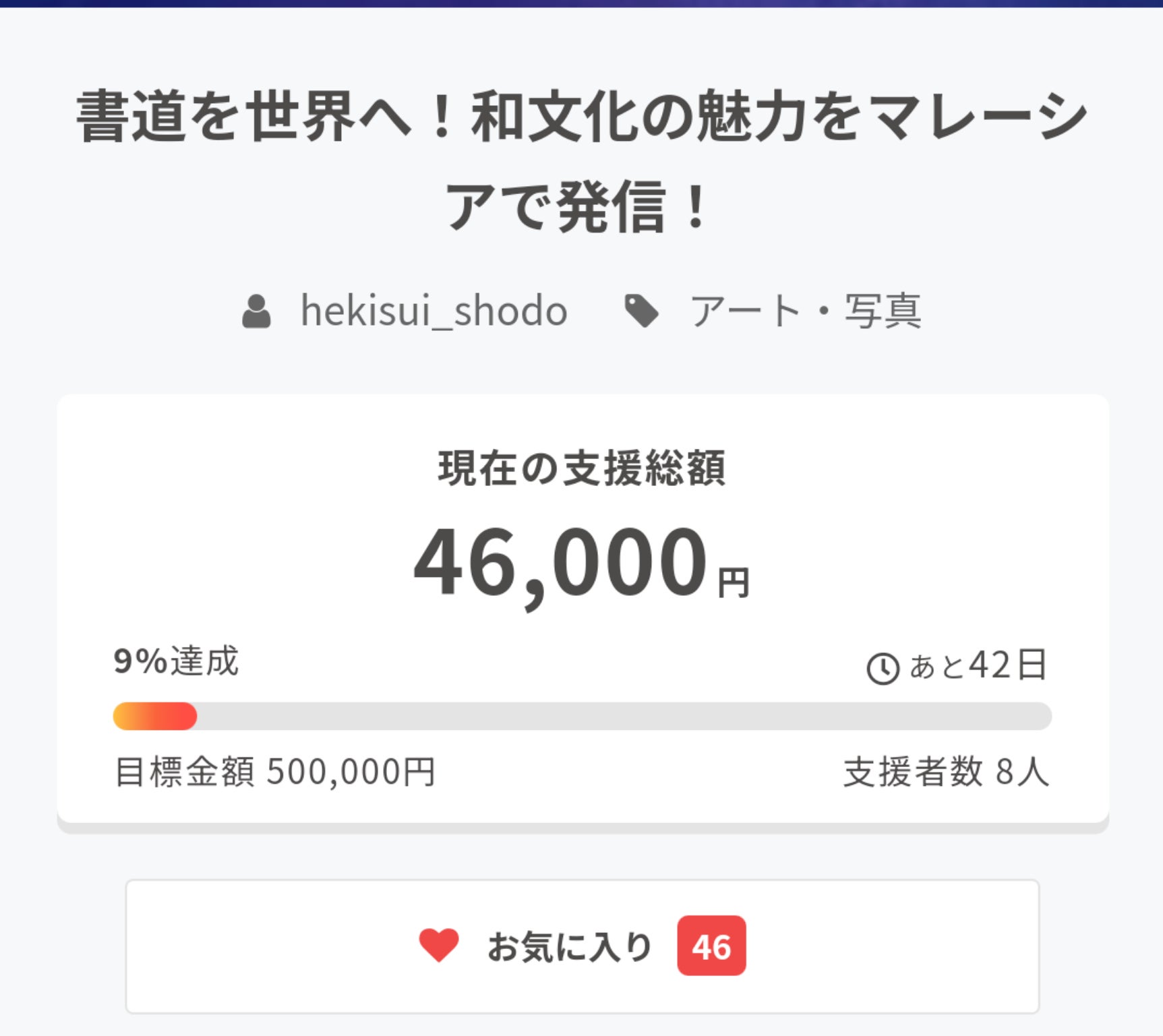 只今、お気に入り登録者数が46人、支援額が46,000円となっています!46にご縁があるのかな?w