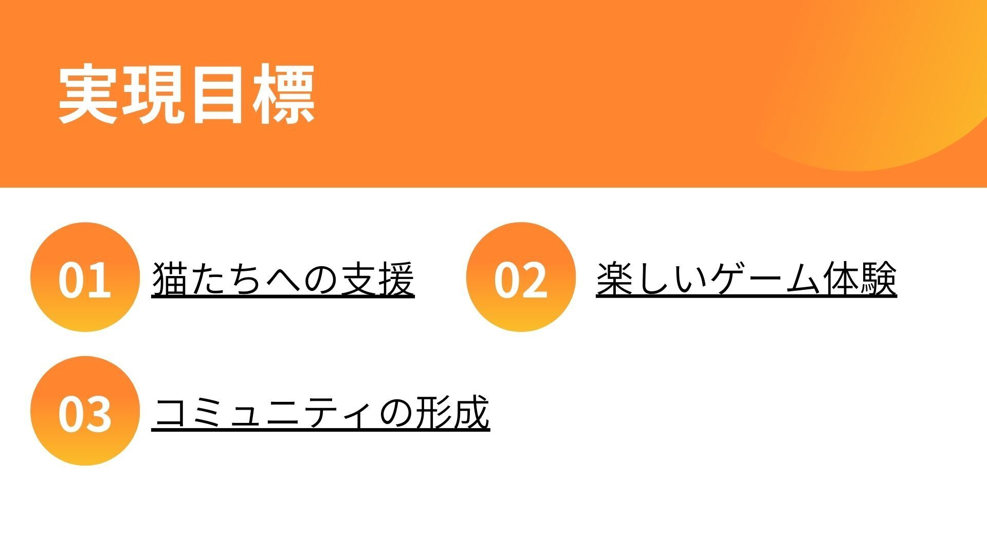 3 コミュニティの形成:猫好きな人々が集まり、共通の目標に向かって協力し合うコミュニティを作りたいと考えています。
