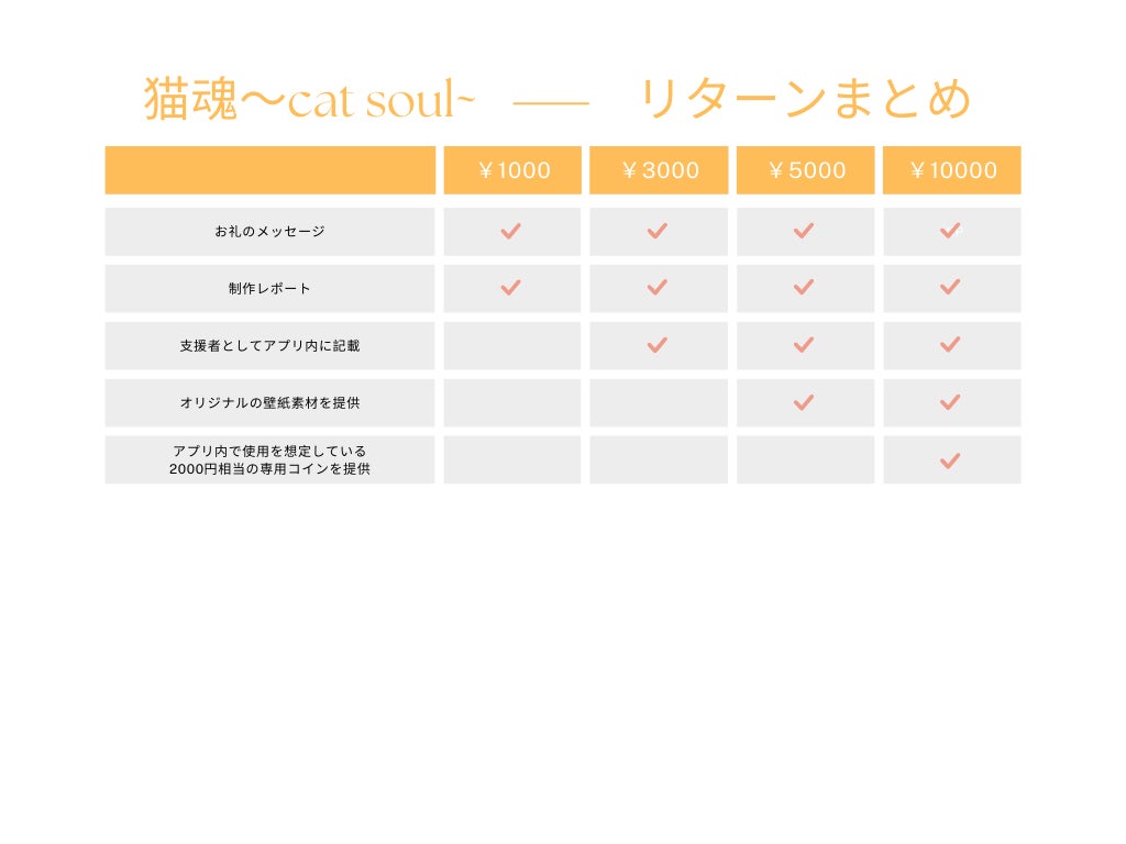 『猫魂〜cat soul〜』プロジェクトの成功は、猫たちの命を救うだけでなく、楽しいゲーム体験を提供し、強力なコミュニティを形成することにつながります。これらの目標を達成することで、多くの人々が猫たちの保護活動に参加し、支援の輪が広がることを目指しています。皆様のご支援とご協力をよろしくお願いいたします。ゲームをプレイしながら、猫たちを救う活動に参加してみませんか?