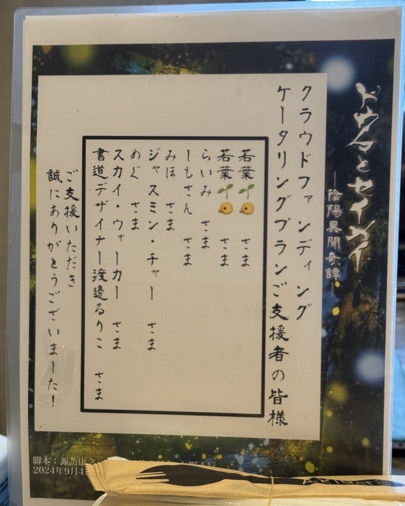 本日も昨日に引き続き、ケータリングプランをご支援いただいた方のお名前を貼り出しております。