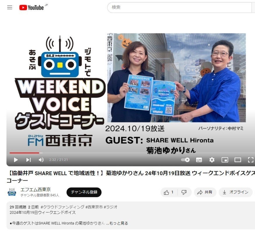 10月19日(土)にFM西東京の「ウイークエンドボイス」という番組でSHARE WELL Hirontaについてお話をしました。
