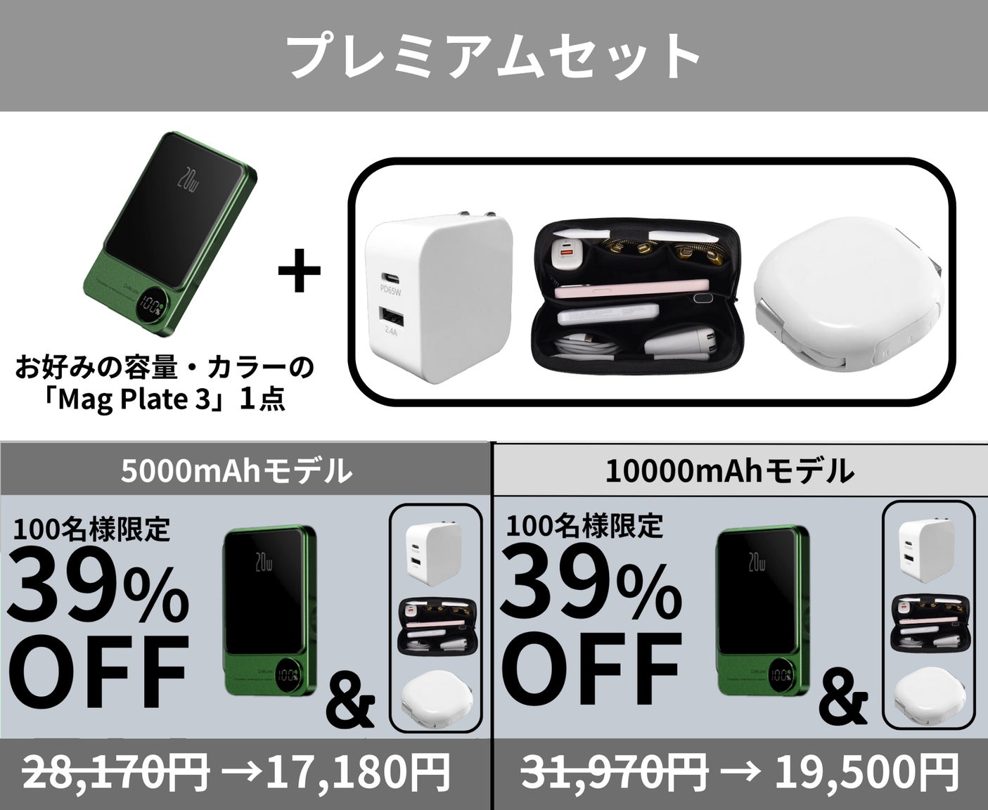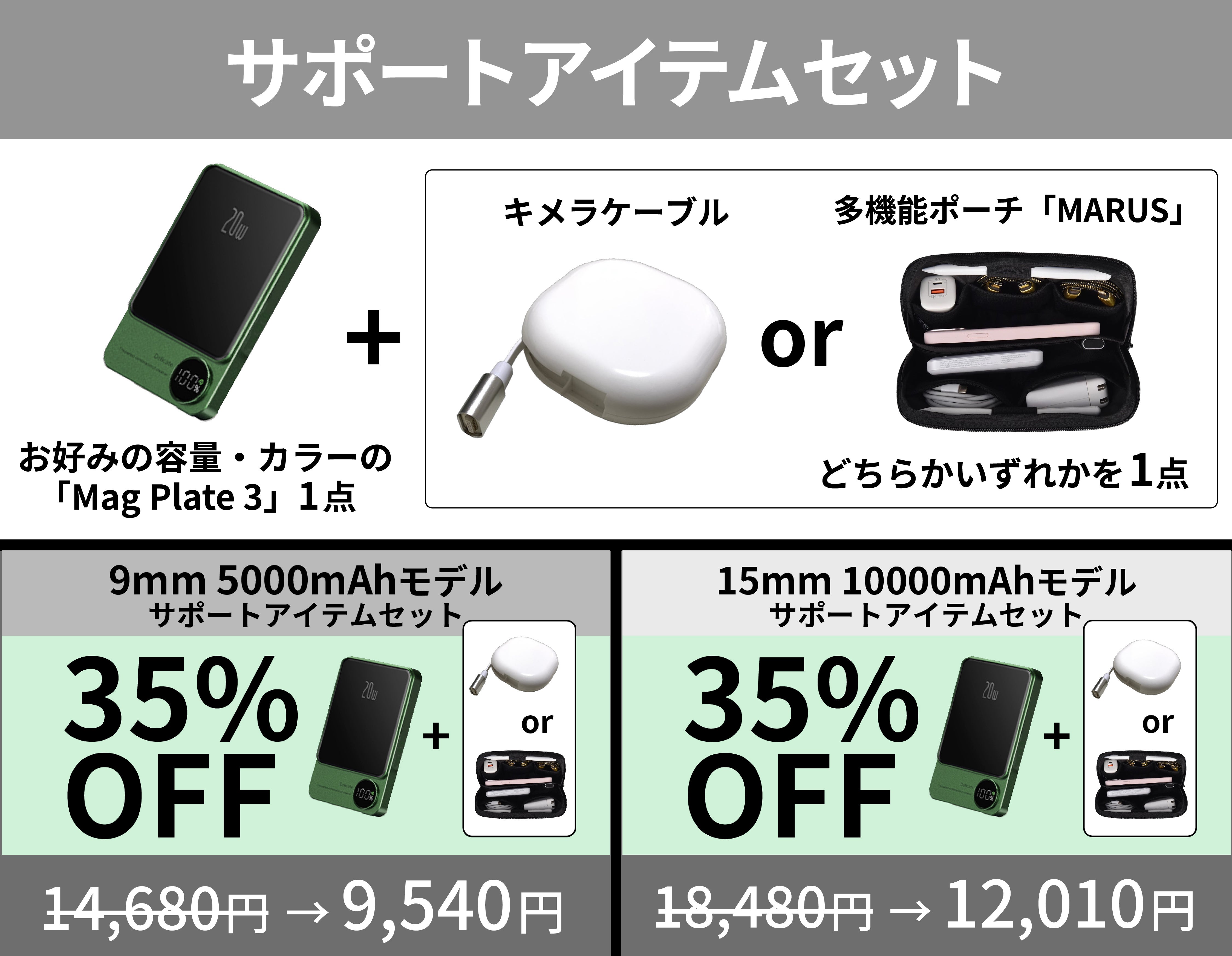 「Mag Plate 3」は5000mAhと10000mAhの2種類の大容量で展開。利用シーンやご使用端末に合わせた選択が可能です。