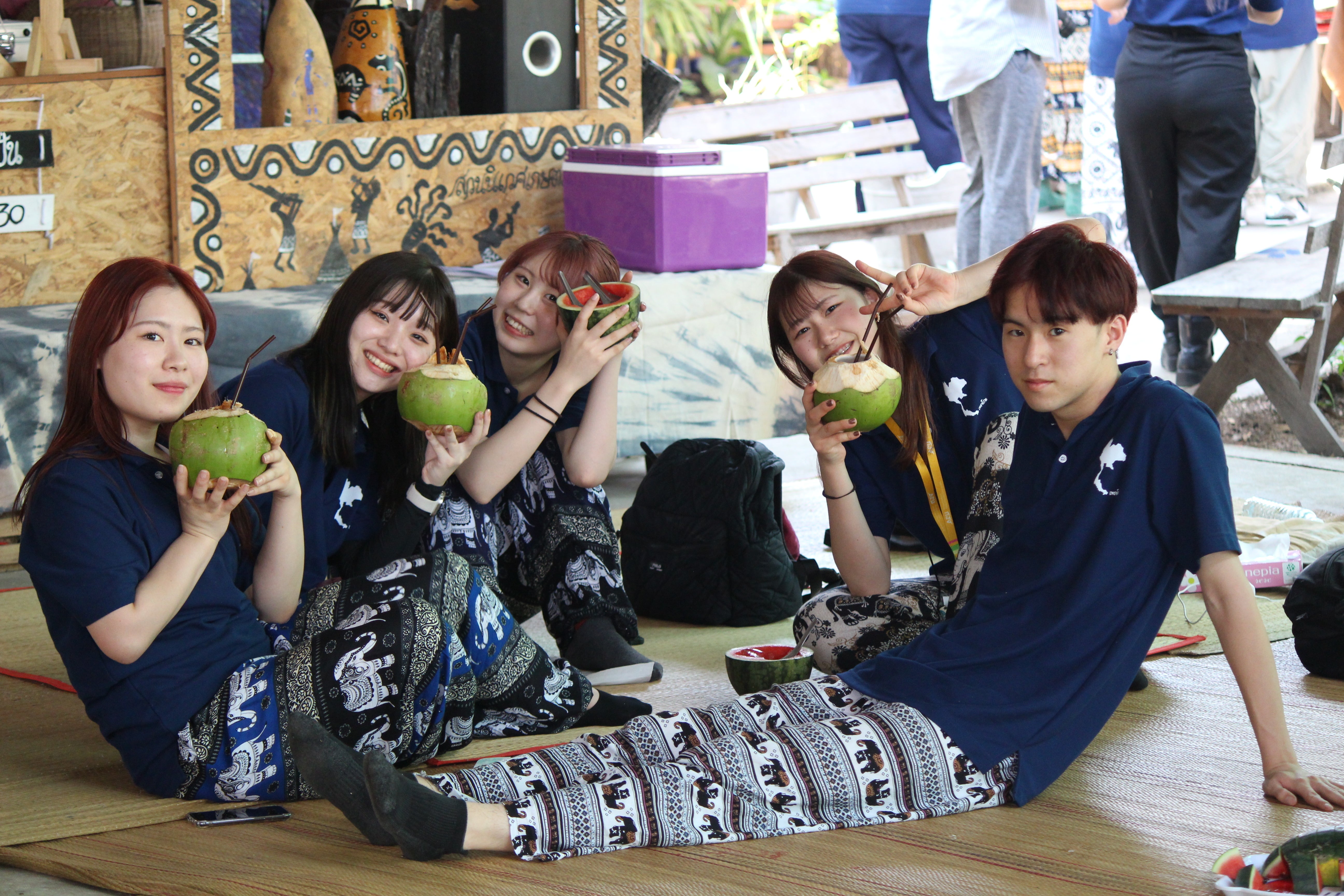 改めましてこんにちは立命館アジア太平洋大学の学生団体PRENGOです。私たちは8月8日よりタイに渡航しLamduan郡を中心に活動を行う予定であり、現在そのための準備を進めています。私たちPRENGOは、教育部・交流部・市場開発部・広報部の四つの部署に分かれて活動しています。本日は日本国内で現地との協力活動が盛んな教育部と交流部の活動を少し紹介したいと思います。教育部はタイの小学校とPRENGOのオンライン授業によって児童らに楽しく英語に触れてもらい、日常で使う簡単な英語のフレーズを使って会話ができるようになること、また、楽しみながら学ぶことで、英語学習の意欲を向上させることを目的に、タイの小学校と協力し、現地の児童に対し英語教育プログラムを展開しています。今夏のタイ渡航では、オンライン授業で学んだ英語のフレーズを劇という形で発表してもらうことを通して、英語を話すことで感じた喜びや達成感から成功体験を積み、英語を話すことへの自信をつけることを目標とした活動を行います。 交流部は月に1度、オンラインで現地の子供たちに向けて日本語教室を行っている他、年に2度タイに渡航した際は、対面で日本語教室を開催しています。この教室はNiwetが行う「やりたいことをやる教室」と呼ばれる、様々な分野の活動(芸術、音楽、言語、農業など)を学校外で現地の子供たち向けに教えるものの1分野として行われています。今夏のタイ渡航ではタイの児童らが、感情を日本語で言えるようになり、それを通してPRENGOメンバーと自分の感情、そして相手の感情理解についても学びあう機会を提供すること、また、PRENGOメンバーが行う日常場面の寸劇を通し、児童らが状況に応じた自分や相手の感情の変化の理解や、それを踏まえてどのように振る舞えばよいかも考慮できるようになることを目標とした活動作りを行っています。私たちPRENGOの行う活動を少し知っていただけたでしょうか?次回は草木染めプロジェクトを行っており、本プロジェクトを担当している市場開発部、そして広報部について紹介すると共に、前回のタイ渡航で私たち市場開発部が行った活動の一部をご紹介いたします。