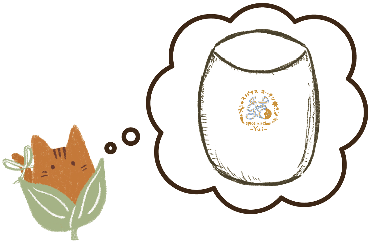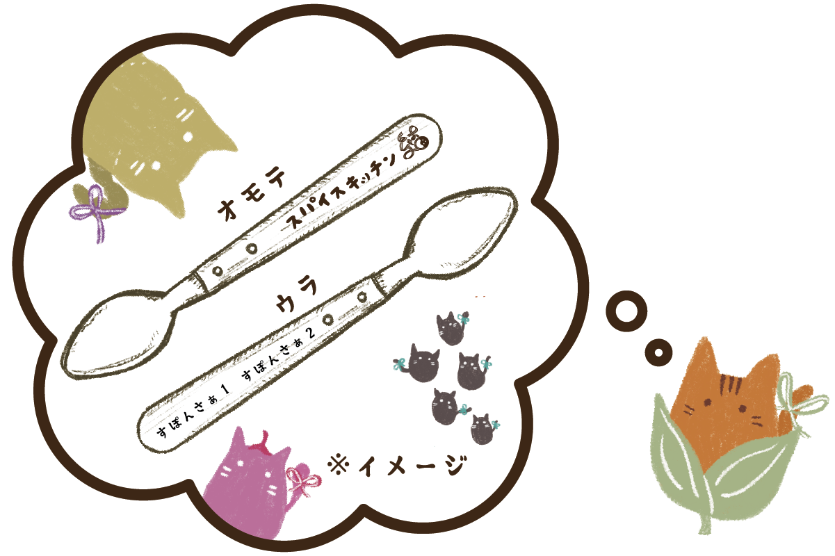 柄の部分に店舗ロゴとスパイス猫たちが描かれたものになります!