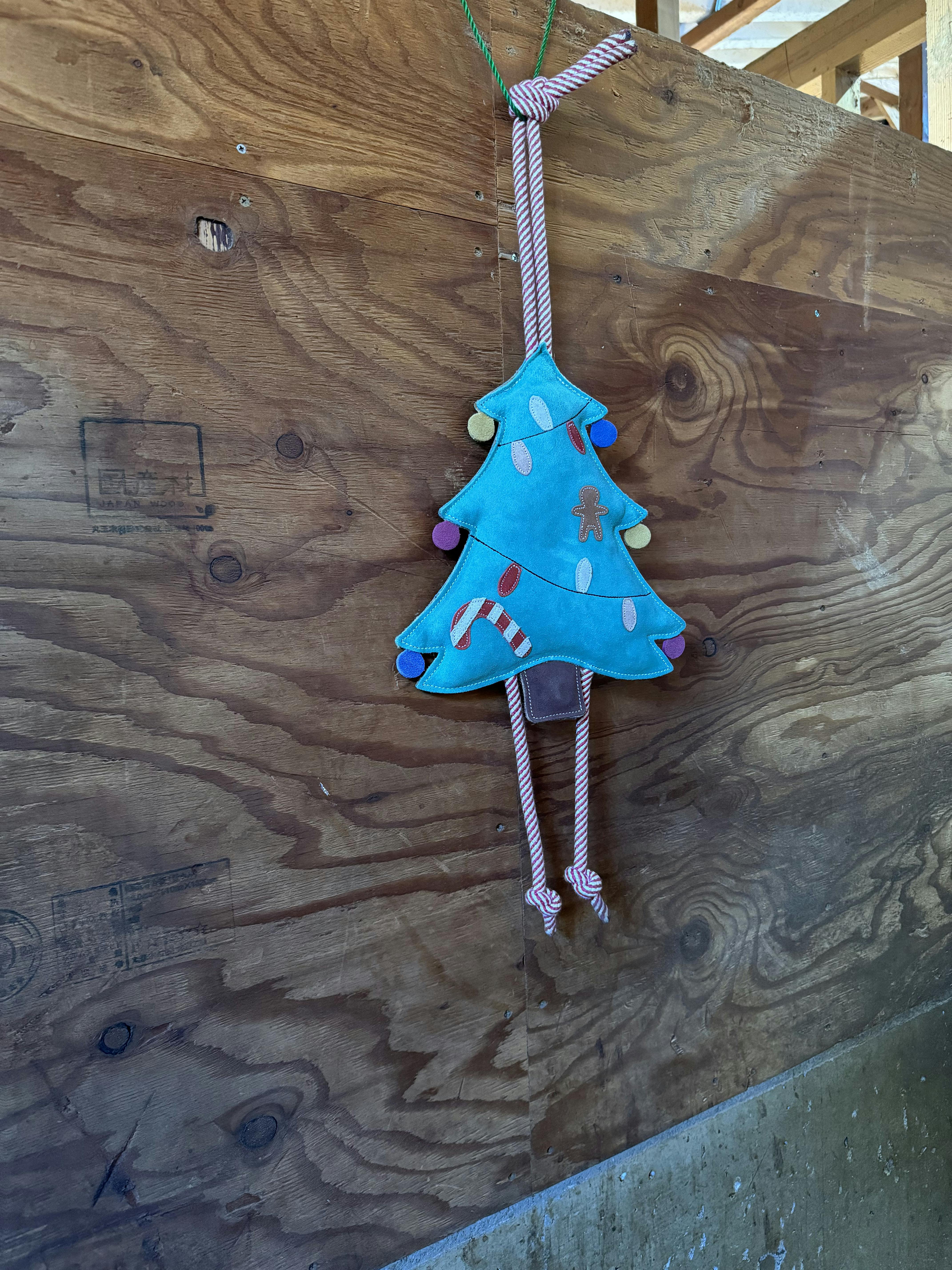 そして、ご支援いただいたおもちゃを馬房に吊るしてきました。