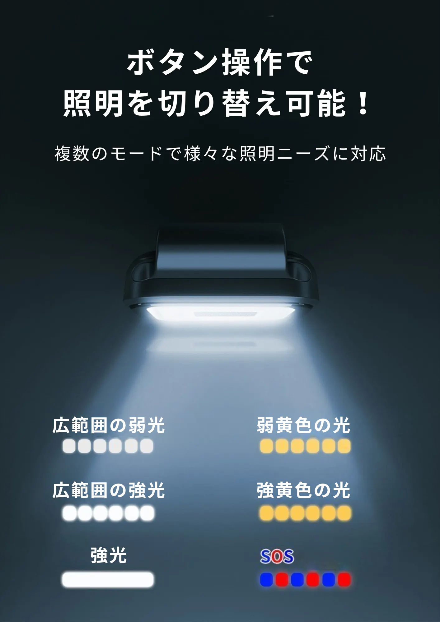 ボタン操作で簡単に変更でき、夜の様々なシーンに合わせられます!