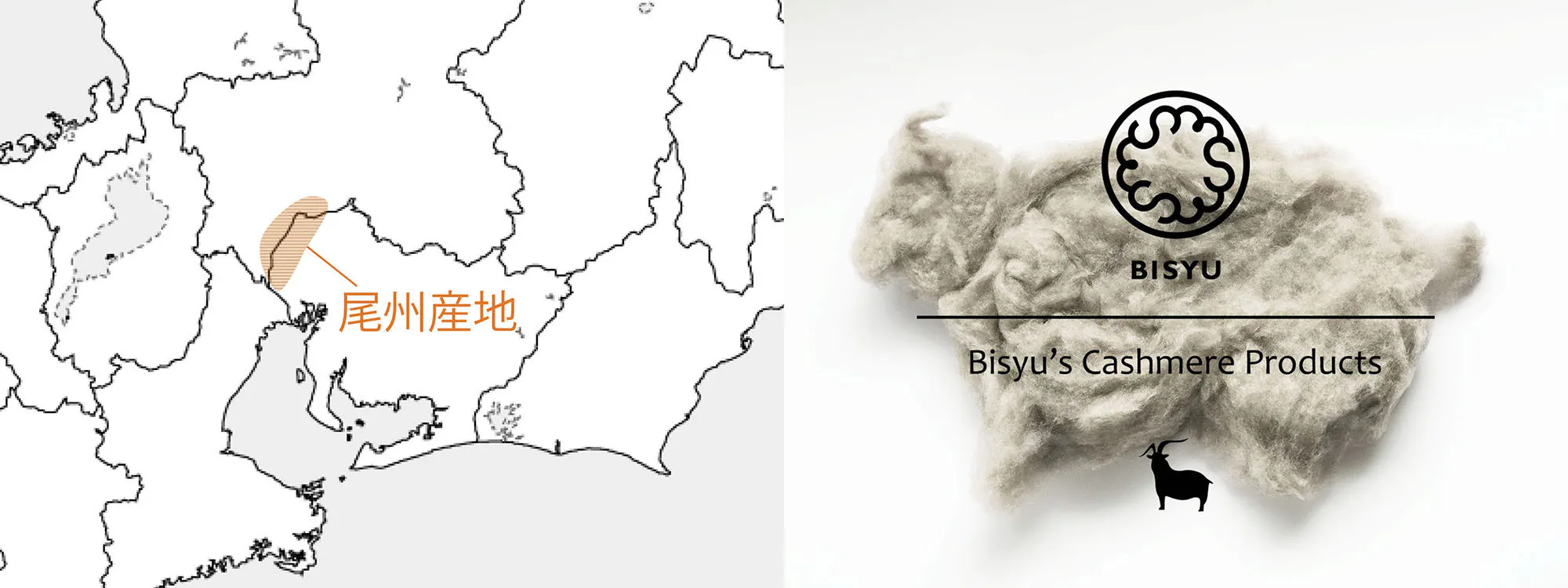 Bisyu's Cashmere は、厳選された上質で繊細なカシミヤ産毛は国内紡績工場にて更に細く長いものだけを選別して良質な物だけを使用しています。