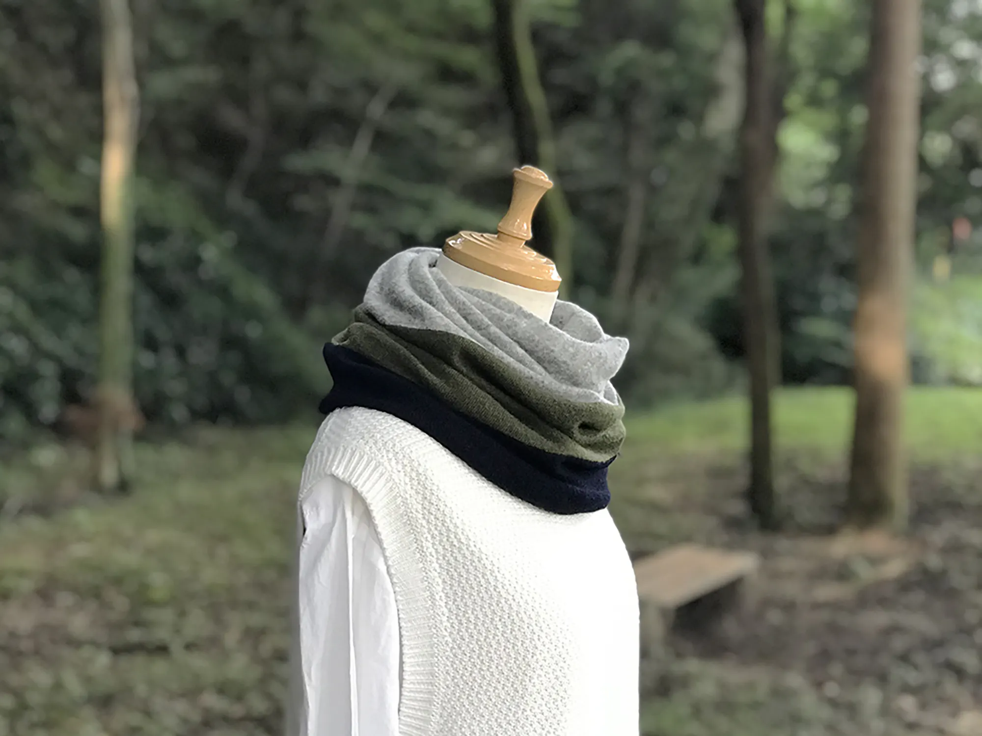 今回のアイテム[ kumiiro snood ]は片面3色組・片面2色組のリバーシブルで企画しましたが、どのお色をどんな感じでアレンンジするかは自由自在!