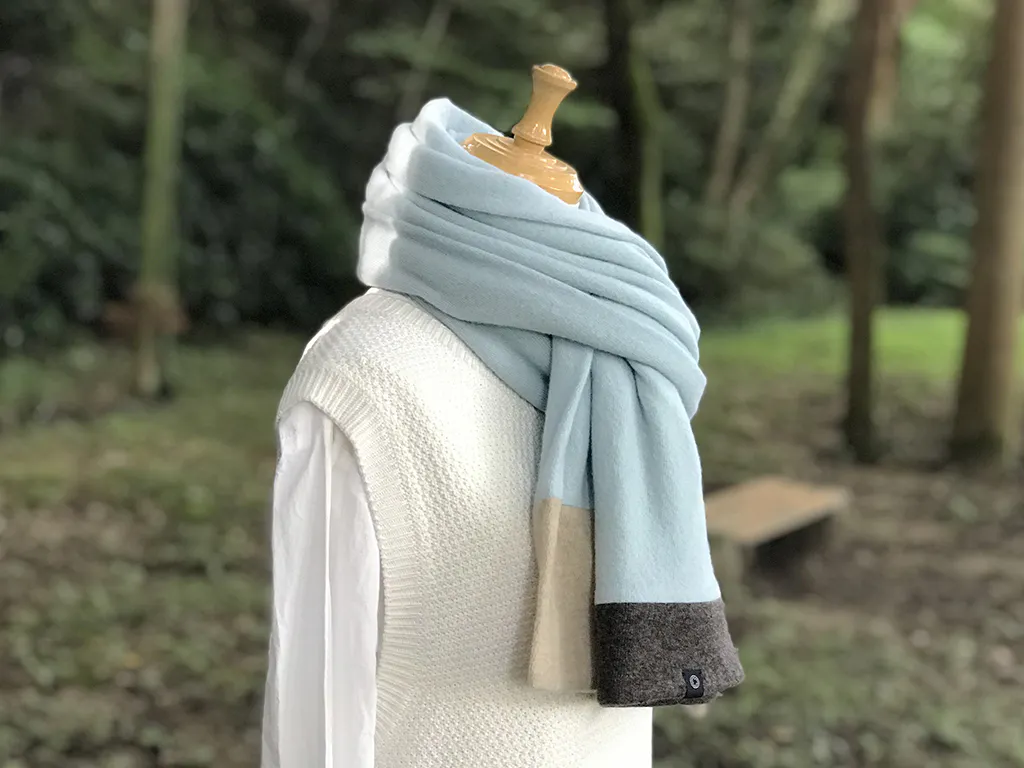 今回のテーマは、[ 組み色=kumiiro ]カシミヤ原料独特の控えめな光沢感と奥行きのあるお色を組み合わせ、上質でちょっとだけ遊び心をくすぐるスヌードとマフラーを製作しました。