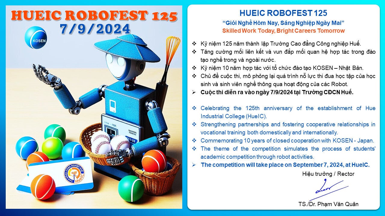 2024年9月7日にベトナムのフエ工業短期大学で開催される"HUEIC ROBOFEST 125"に参加します。