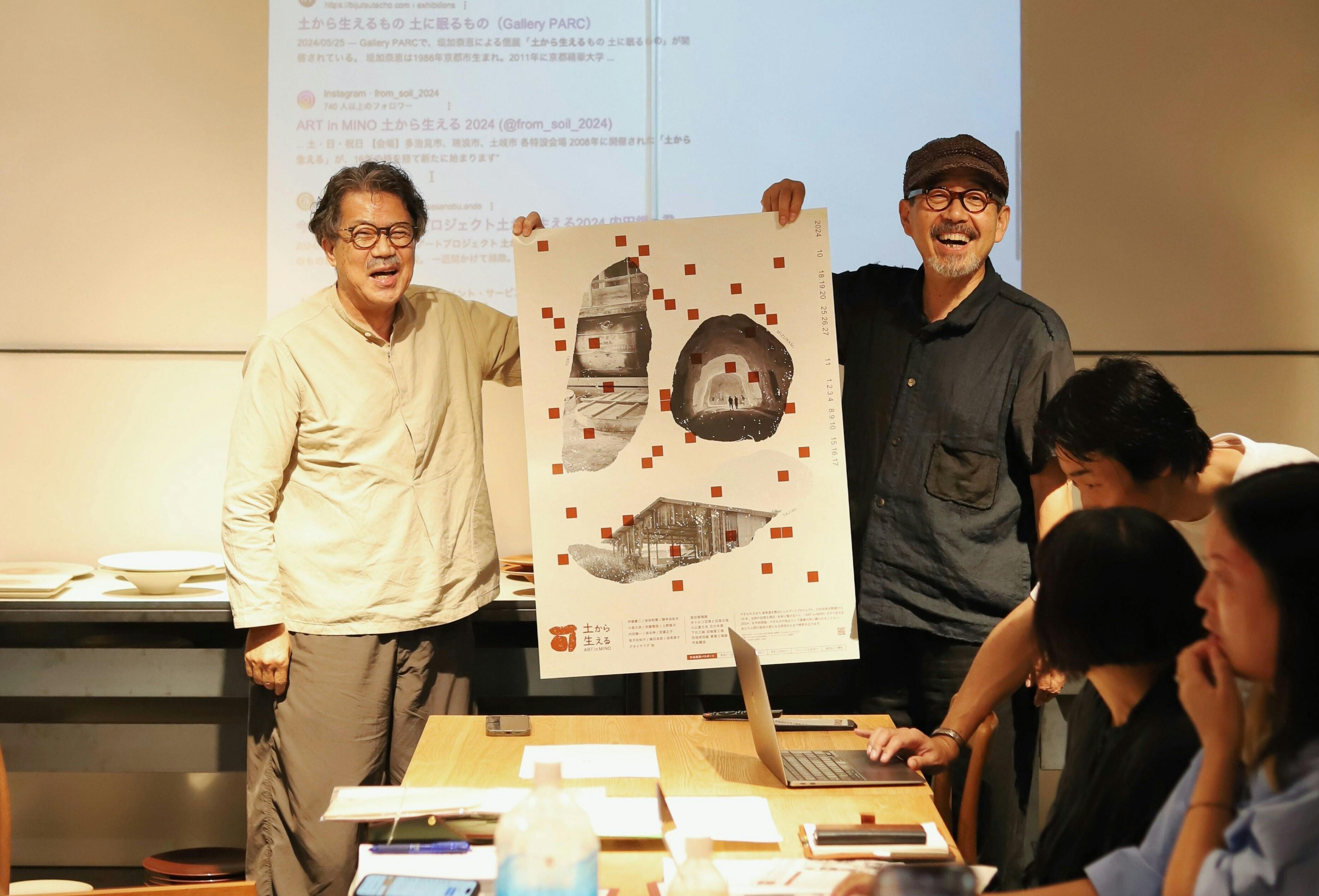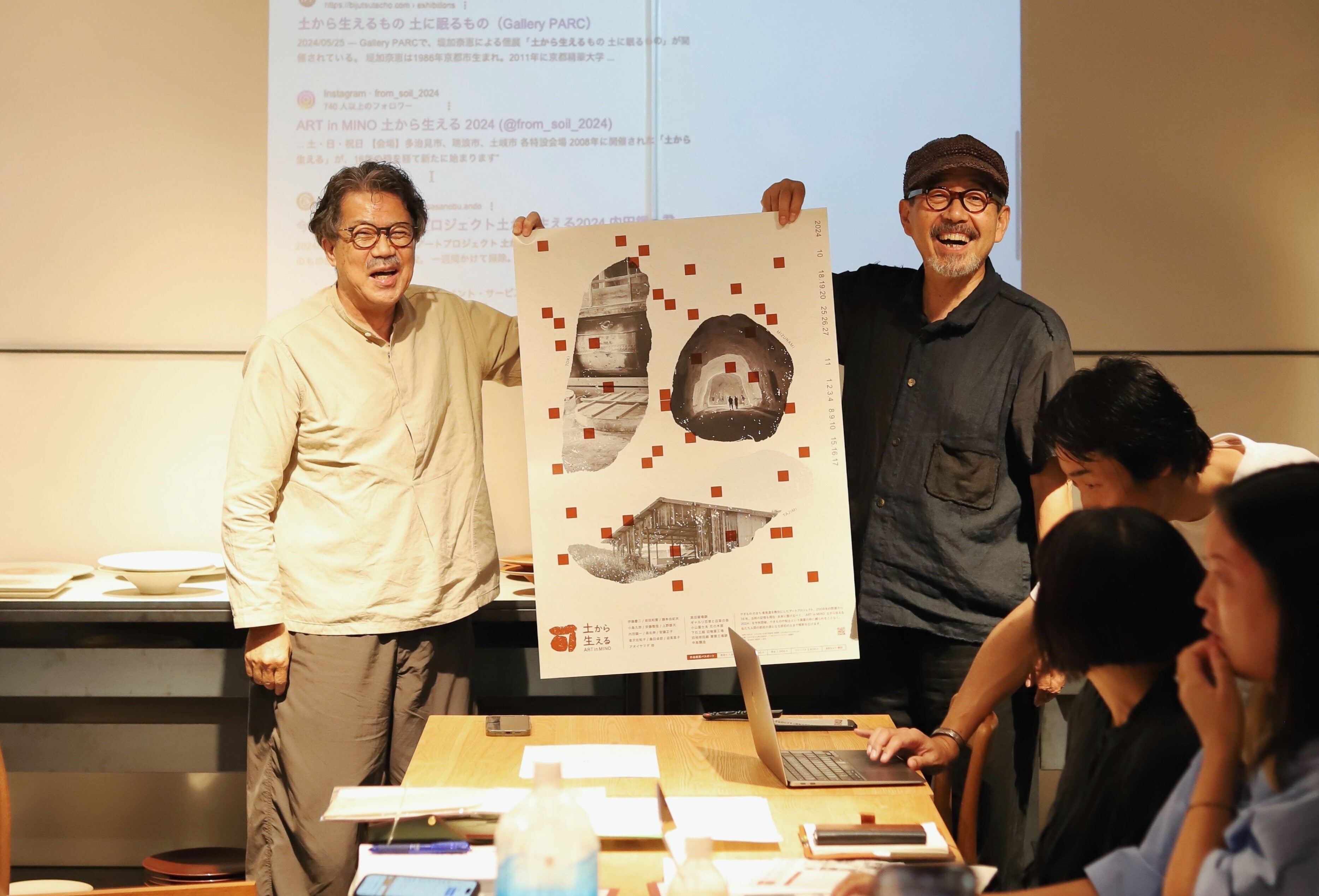 芸術監督を安藤雅信さんに依頼。土から生える発起人の一人でもある高橋綾子さんには監修をお願いし、2008年の参加アーティストでもある森北伸さん(愛知県立芸術大学 教授)はアドバイザー兼作家としてご協力いただけることになりました。土の価値から見直し、観光と物販両面から地域のリブランディングを計る一般社団法人 セラミックバレー協議会の後押しも得て、2024年2月にセラミックバレー展トークイベントで、土から生える第二回開催を決定づけました。