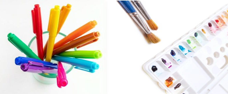 学校で使っている絵の具や、お家にある色ペンなど、今お持ちの身近な画材を使って気軽に楽しむことが出来ます。