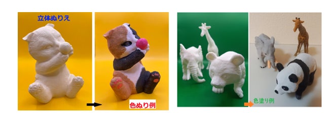 “立体ぬりえ 立体ぬりぬり”は、絵の具・ペン等の好きな画材を使用して、自由にぬり絵ができるプラスチック製の白いフィギュアです。