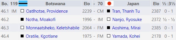 9月13日(金)日本時間22時から第3ラウンドが行われ、オープンチーム(70)はボツワナ(119)と、女子チーム(100)は格上ルクセンブルク(53)との対戦でした。